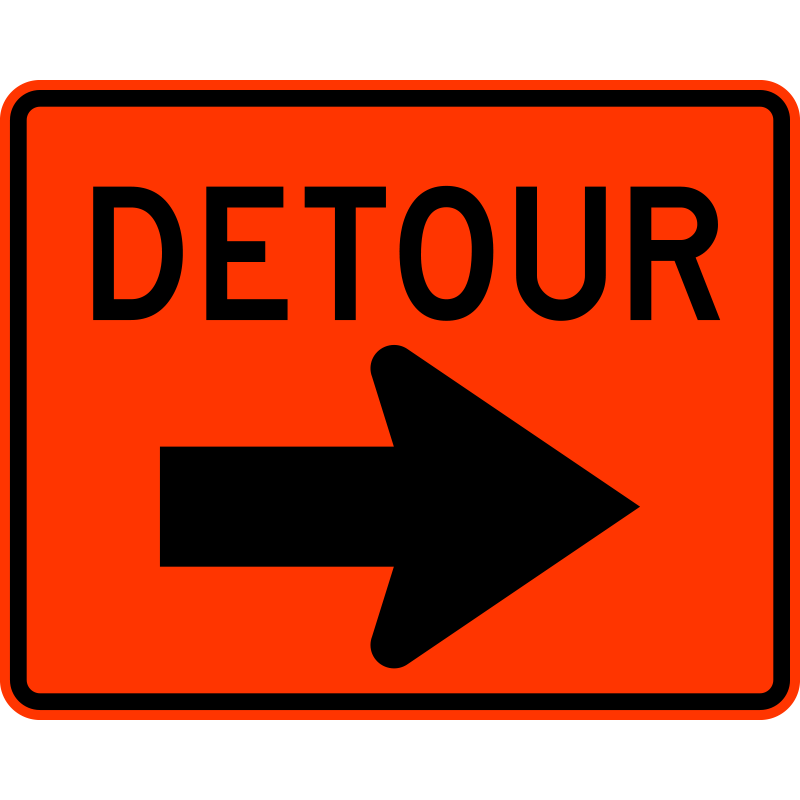 Pre-drilled mounting holes allow for fast installation on standard sign posts, fences, walls, or temporary stands. Once installed, the Detour Right Arrow Sign directs traffic to the right detour route, enhances safety in construction and maintenance areas, and supports efficient traffic management on your property or worksite. It is an effective solution for contractors, property managers, fleet operators, and safety teams who need to manage redirected traffic during projects or closures.