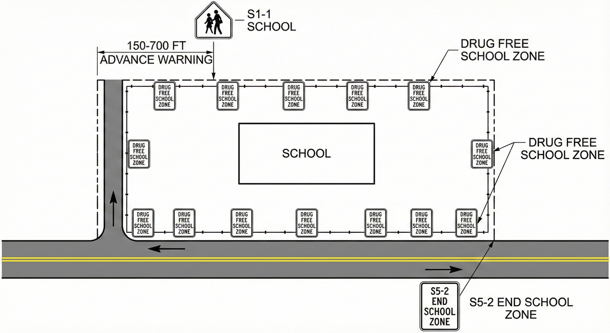 - Placement Protocol: This sign acts as the "Advance Warning." It must be installed 150 to 700 feet in advance of the school grounds or the first student crosswalk to trigger the driver's heightened awareness.