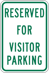A Reserved for Visitor Parking Sign clearly marks parking spaces intended for guests and visitors, helping property owners and managers control parking flow and prevent unauthorized use by residents or non-authorized vehicles. It is especially useful for apartment buildings, condominiums, office parks, gated communities, retail centers, or any property where visitor parking must be clearly differentiated from resident or employee parking.