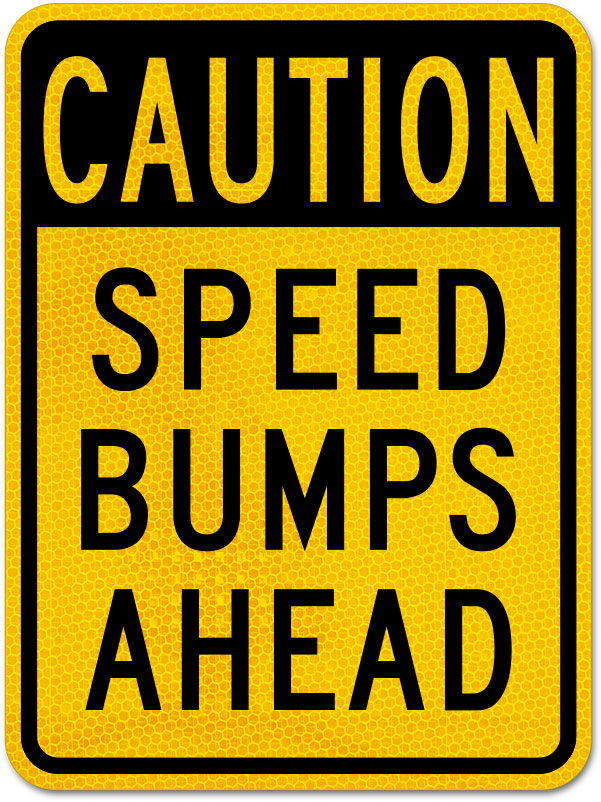 A Caution Speed Bumps Ahead Sign communicates to drivers that speed bumps lie ahead and that they should slow down accordingly to navigate safely. Posting this sign helps reduce vehicle damage, minimize sudden braking, and improve driver awareness in areas with traffic calming devices. It is widely used in parking lots, private roads, gated communities, apartment complexes, industrial campuses, school zones, and other locations where controlled vehicle speeds are essential for pedestrian safety and smooth traffic flow.